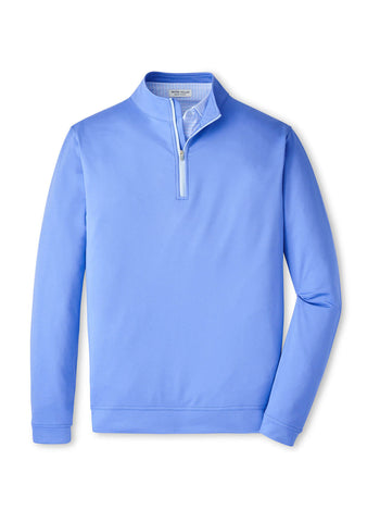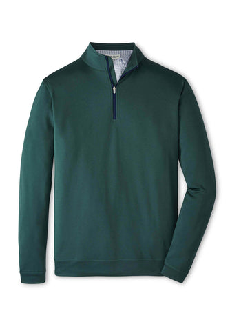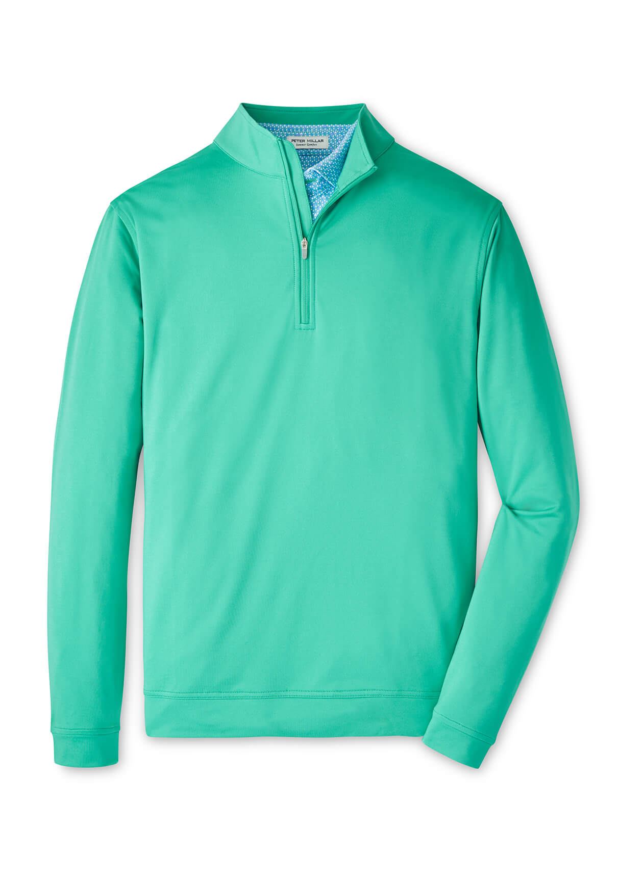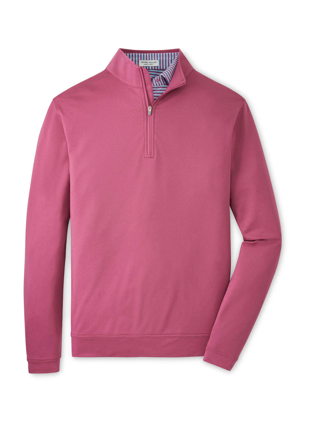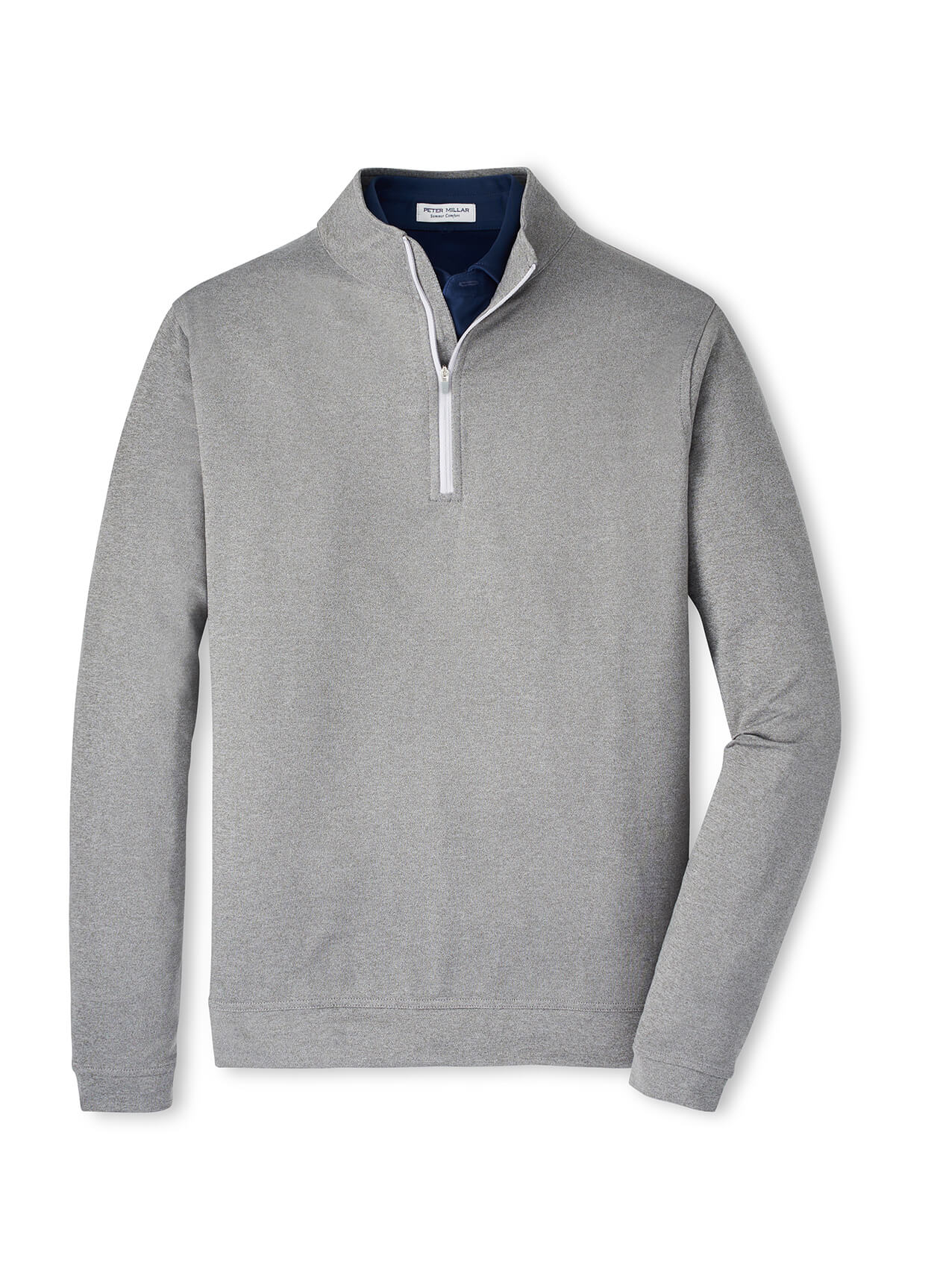This iconic quarter-zip delivers a performance-focused twist on a classic style. It offers four-way stretch, moisture-wicking, and easy-care benefits to keep you comfortable and confident far beyond the final green. The fabric's mélange design creates subtle visual variation for added style. Its finished with a mock collar and banded cuffs and hem.